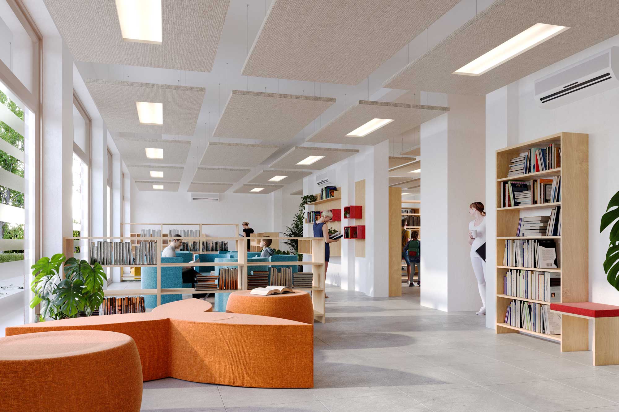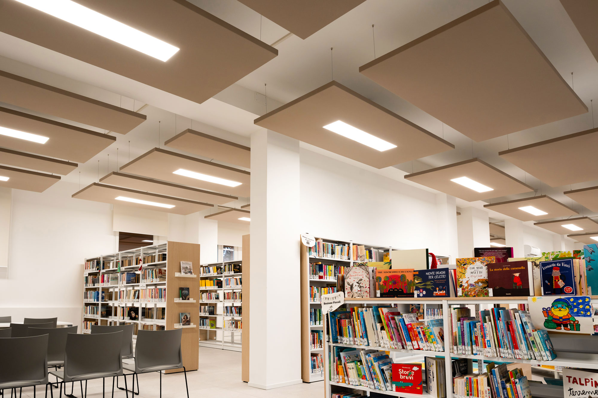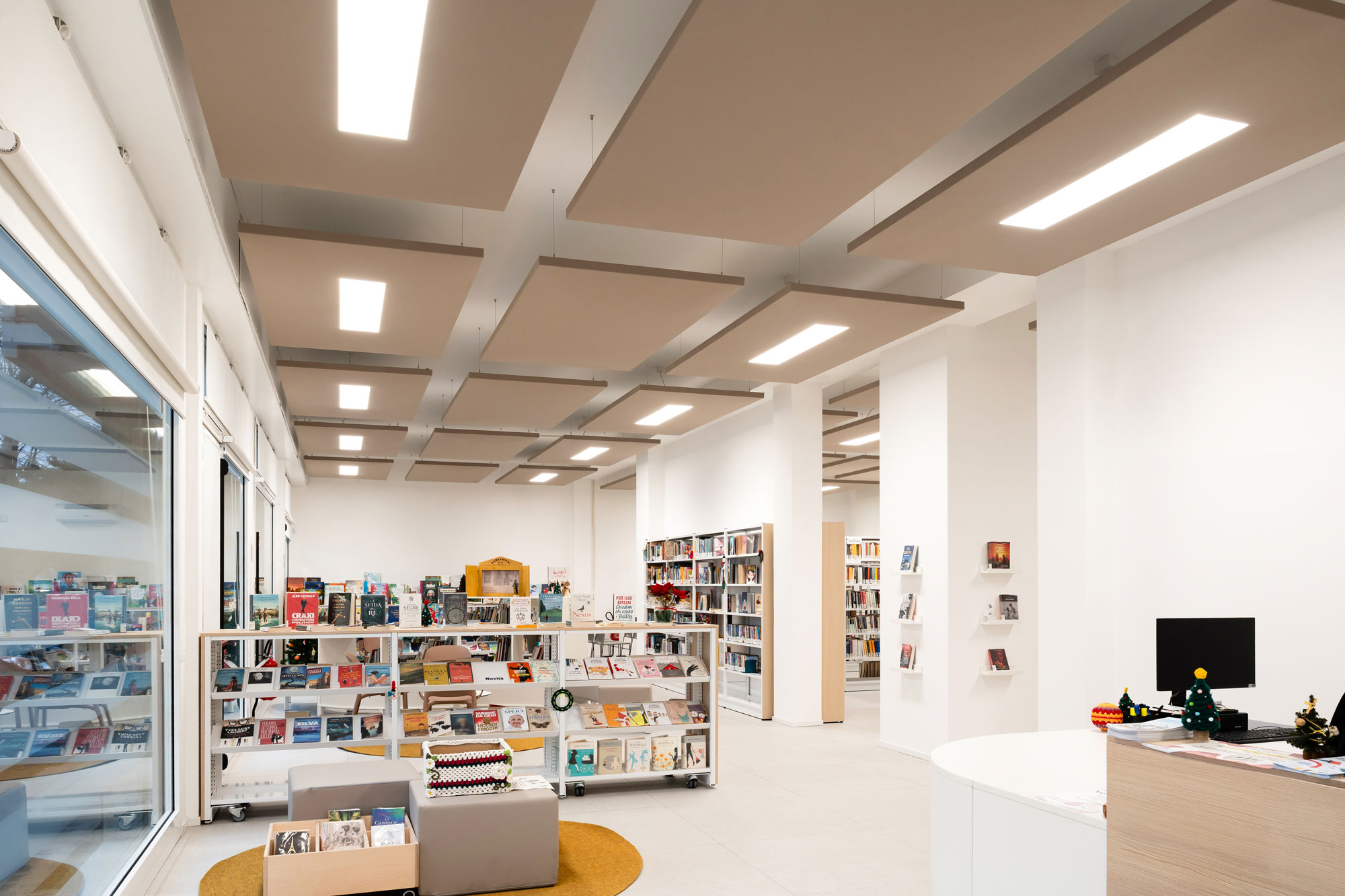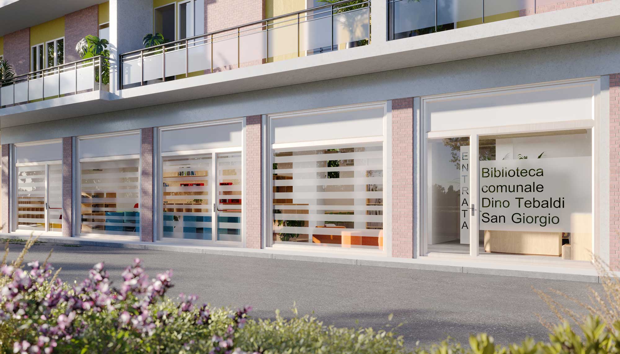 La biblioteca comunale Dino Tebaldi è una biblioteca rionale situata nel quartiere San Giorgio, a sud di Ferrara, al piano terra di un edificio a destinazione prevalentemente residenziale in via Ferraiola 12. L’ampliamento e la riqualificazione della Biblioteca Tebaldi di San Giorgio è una risposta concreta al desiderio di tanti cittadini di poter avere a disposizione nuovi spazi pubblici. I locali limitrofi alla biblioteca, parte del patrimonio comunale, sono stati integrati grazie al piano di rifunzionalizzazione degli edifici comunali avviato dall’Assessorato al Patrimonio. Il progetto si divide in due interventi distinti. La sede fino ad oggi utilizzata come biblioteca è stata riqualificata e destinata alla conservazione dei volumi, con un intervento meno invasivo (cambio della vetrina, infissi sul retro, tinteggiature posa del pavimento). I locali adiacenti sono stati trasformati nella nuova biblioteca aperta a tutti, prevedendo una ristrutturazione più importante, compresa la demolizione di tutte le pareti esistenti e divisione dei vari ambienti e locali di servizio, impianto elettrico, di riscaldamento e gas. Qui la ristrutturazione ha previsto la creazione di un openspace luminoso e accogliente nel quale trovano collocazione le postazioni per la lettura e la consultazione dei libri, l’archivio, due bagni e un piccolo angolo ristoro. L’arredo presente nell’openspace è funzionale e modulare, cioè in grado di permettere ampia flessibilità in occasione di eventi o attività di gruppo. Gli infissi esistenti sono stati sostituiti con nuove soluzioni ad alte prestazioni energetiche, consentendo nel tempo grandi risparmi sui consumi e un ottimale utilizzo della luce naturale.