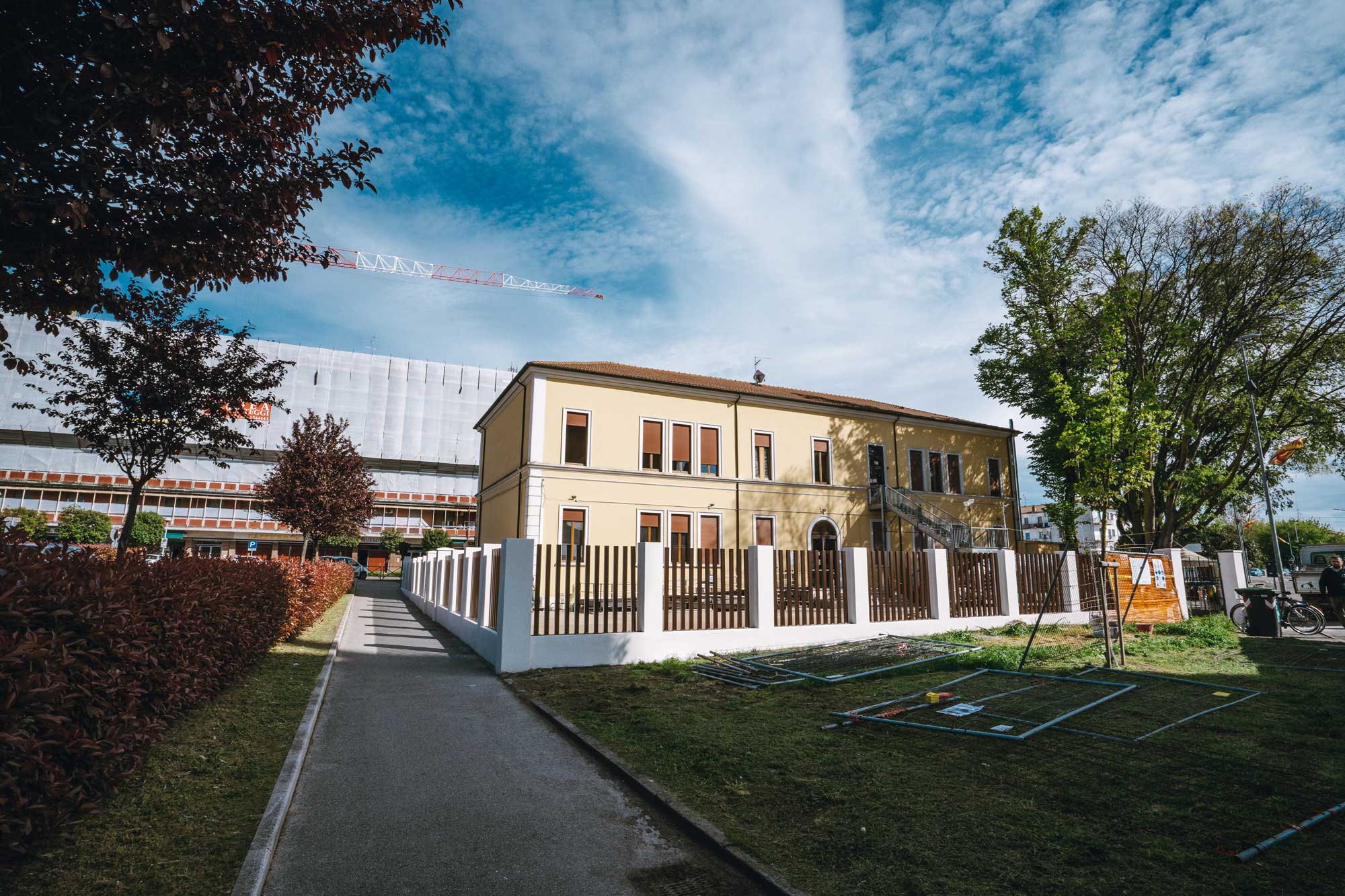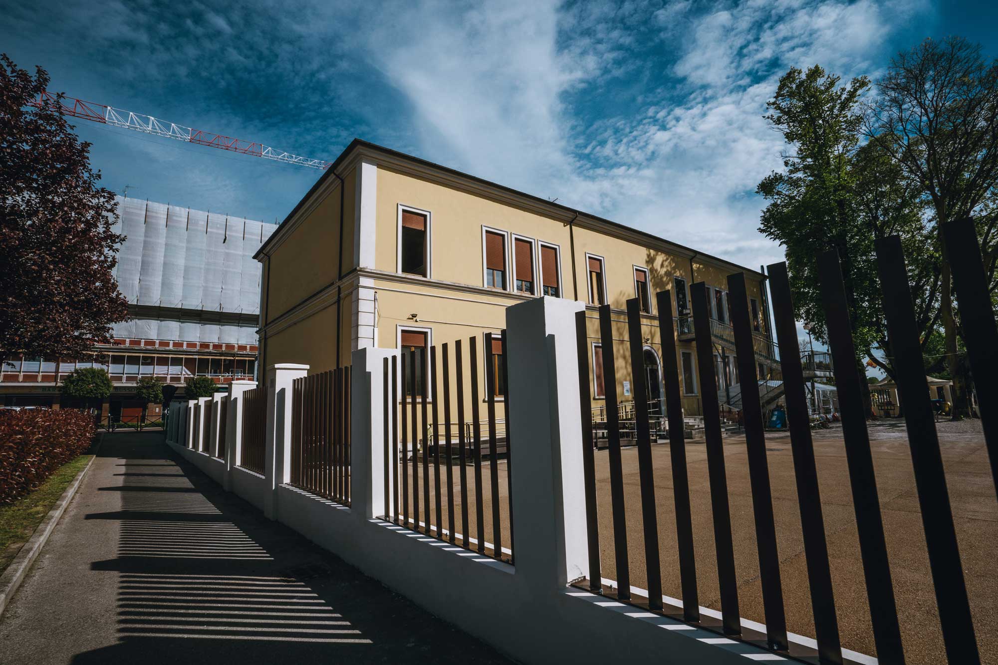 L’edificio, sede attuale della Contrada San Giorgio, è posizionata in un luogo strategico della città soggetto a una recente progettazione urbanistica che ne ha determinato un ammodernamento importante. L’intervento ha riguardato il rifacimento della recinzione e dell’area esterna dell’Ex Bombonati, nello specifico la fatiscente recinzione in cemento è stata sostituita con degli elementi metallici lineari, coerenti con l’aspetto estetico dell’area limitrofa; il giardino interno è stato riprogettato con alberature e pavimentazioni drenanti e la formazione di un nuovo piazzale ampio e moderno a disposizione delle esigenze della contrada; sono stati oggetto di particolare intervento l’abbattimento delle barriere architettoniche tramite il ridisegno di una rampa esterna e dei percorsi di accesso all’edificio.